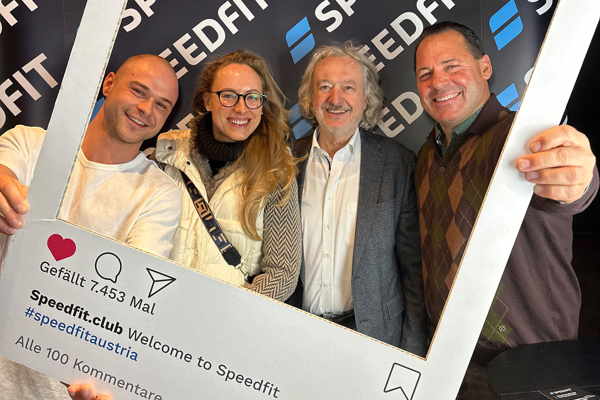 v.l.n.r.: Sebastian Wiesinger (Vertriebsleiter Speedfit Schwechat), Julia Leiner, Manfred Leiner, Speedfit-Geschäftsführer Patrick Osterbauer (c) Speedfit GmbH, Dragana Andrejic